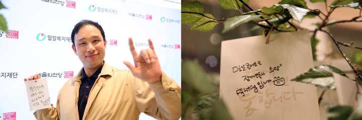 `Hope it is a concert of harmony`, `Miral concert is hope for persons with disabilities` messages cheering Miral concert are filling a tree. On Monday, 28th of April, the 11th Miral concert was held on a concert hall in Seoul Arts Center. The view was quite special.